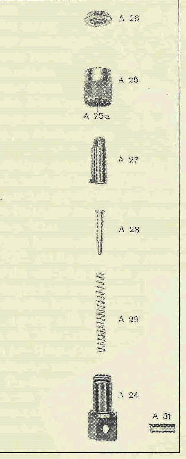 This post is about making the rear sight button for the FG-42 first model. To give you an idea of the complexity of this part I am adding a picture from “Death From Above” . This is a component break down of the parts for the first model FG-42 rear sight.