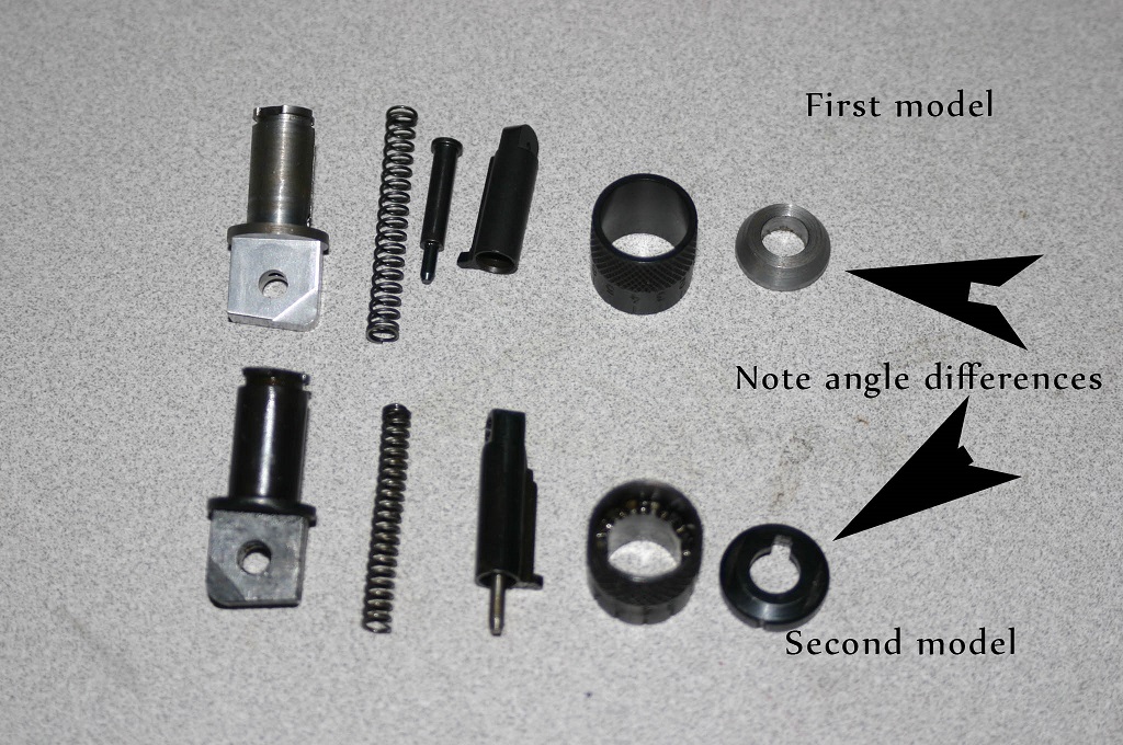 The important information on these pictures is the angle of the button that holds it together and the design of the sight post. This post is about the lathe operation for part A 26. This is the button that holds the entire sight together. If you compare this sight with a later model Fg-42 you will notice the differences in the angle and the thickness of the part. The internals however are inter changeable.