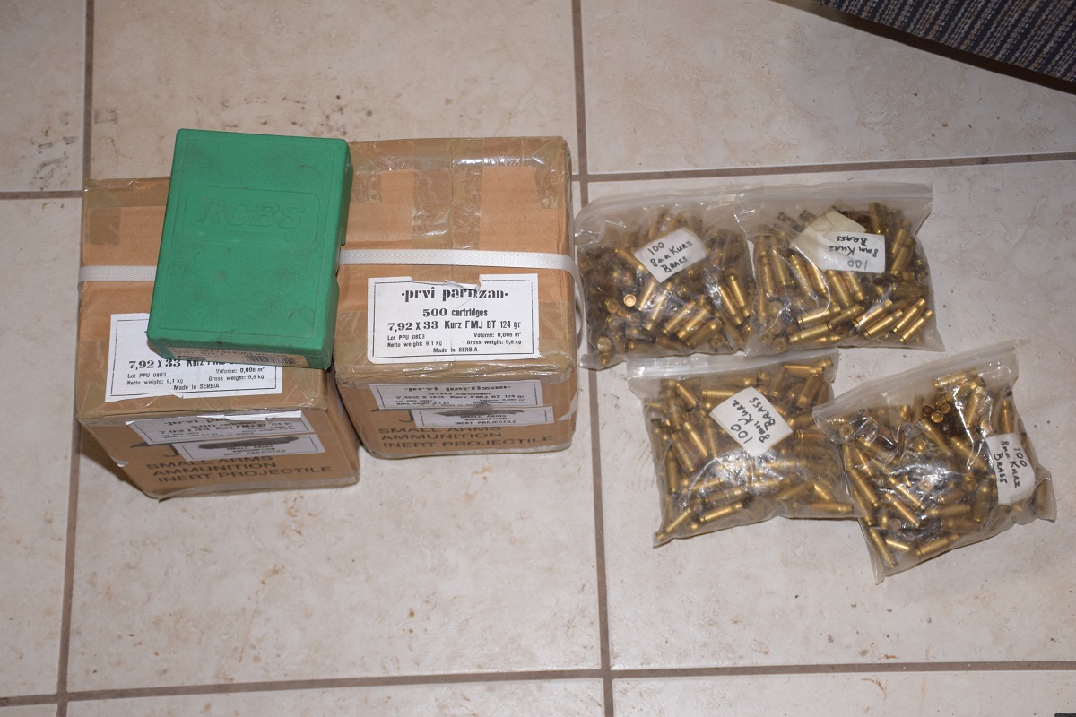 I want to thank Greg at Allegheny Arsenal , MG-34.com, for sending out some needed 7.92×33 ammo, brass and reloading dies. Here at Gun Lab we go through a great deal of 7.92×33 ammo testing the weapons that we are making as well as making and using proof loads. Two cases of prvi Partizan 7.92×33 ammo.
