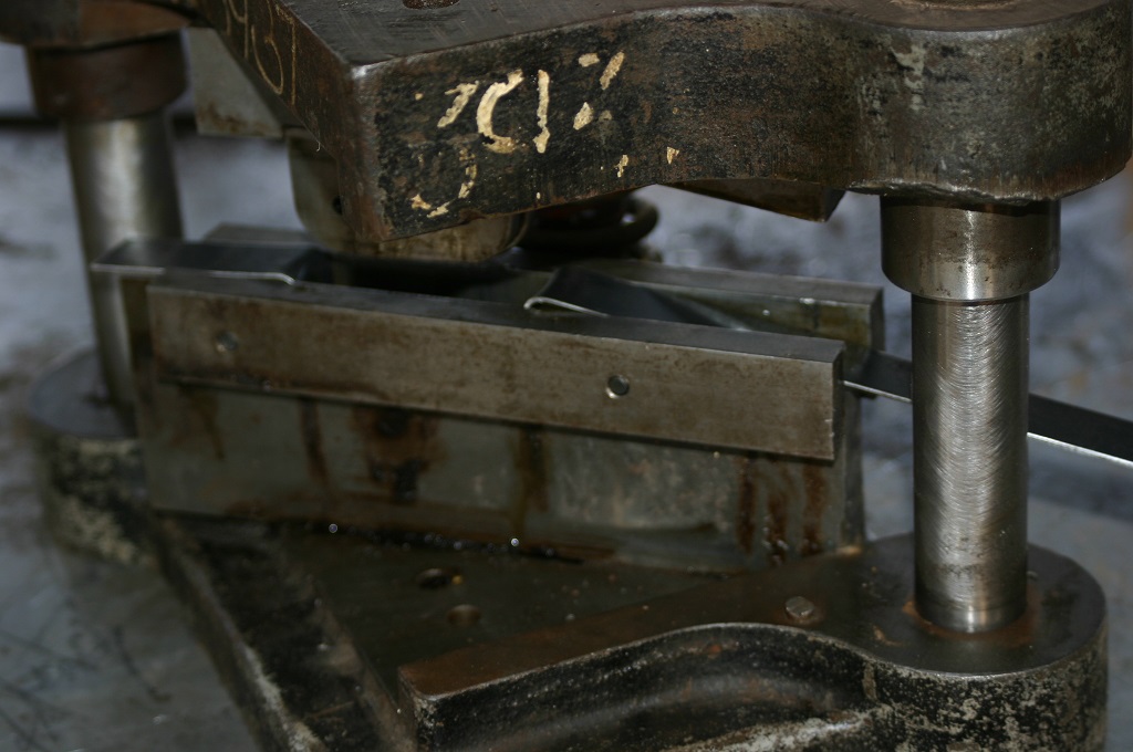 After shearing the piece is de-burred, lubed and stamped in the forming die.